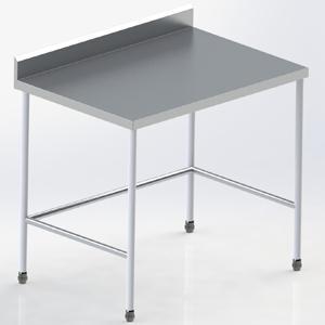 A mesa lisa em aço inox possui chapa em aço inoxidável AISI 304 e estrutura em Perfil "U" de 60×30 mm com pés tubulares de diâmetro 1.¼" e contraventamento tubular nos 03 lados de diâmetro 1″.